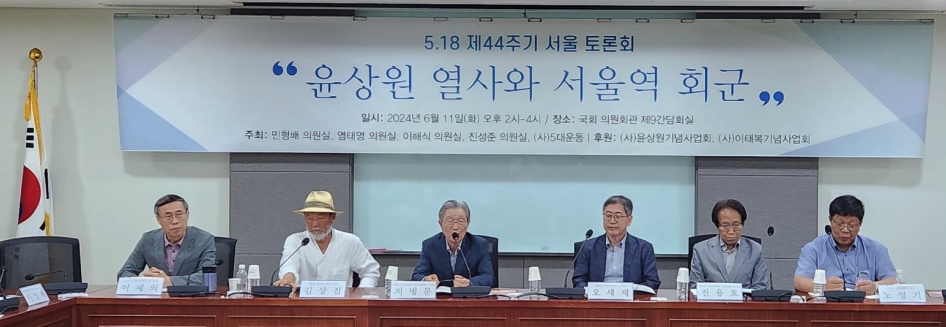 5.18 44Áֱ⸦ ¸Â¾Æ <À±»ó¿ø ¿»ç¿Í ¼¿ï¿ª ȸ±º Åä·Ðȸ>°¡ 6¿ù 11ÀÏ(È) ¿©Àǵµ ±¹È¸ ÀÇ¿øÈ¸°ü 9°£´ãȸ½Ç¿¡¼ ¿·È´Ù. °øµ¿ÁÖÃÖ·Î ³ª¼± ¹ÎÇü¹è, ¿°Å¿µ, ÀÌÇØ½Ä, Áø¼ºÁØ ÀÇ¿øÀÌ Âü¼®ÇØ ¡°±¹°¡Æø·Â¿¡ ¸Â¼± ½Ã¹Î±ºÀÇ °á»çÇ×Àü¡±ÀÇ Àǹ̸¦ ÆÄÇìÄ¡´Â Åä·Ðȸ¸¦ ÀÀ¿øÇß°í, »ç)À±»ó¿ø±â³ä»ç¾÷ȸ¿Í »ç)ÀÌź¹±â³ä»ç¾÷ȸ´Â ÈÄ¿øÀ¸·Î Âü¿©ÇØ µÞÇ®ÀÌ ºñ¿ëÀ» Áö¿øÇÏ°í ´Ù¼ö ȸ¿øµéÀÌ Åä·Ð¿¡ Âü¿©ÇÏ¿´´Ù. ÁÂÀåÀ¸·Î´Â »ç)À±»ó¿ø±â³ä»ç¾÷ȸ Áöº´¹® ÀÌ»çÀåÀÌ ¸Ã¾Æ Åä·Ðȸ¸¦ À̲ø¾ú°í, Àüü »çȸ´Â »ç)ÀÌź¹±â³ä»ç¾÷ȸ ÀÌ´öÈñ »óÀÓÀ̻簡 ¸Ã¾Ò´Ù. ù ¹øÂ° ¹ßÁ¦´Â »ç)5´ë¿îµ¿ÀÇ ±è»óÁý »óÀÓÀ̻簡 <À±»ó¿ø°ú ½Ã¹Î±ºÀÇ °á»çÇ×Àü>¿¡ ´ëÇØ, µÎ ¹øÂ° ¹ßÁ¦´Â »ç)5´ë¿îµ¿ ÀÌ»çÀåÀÌÀÚ »ç)ÀÌź¹±â³ä»ç¾÷ȸ ¿À¼¼Á¦ À̻簡 <¿Ö ¼¿ï¿ªÈ¸±º°ú À±»ó¿ø ¿»ç¸¦ °°ÀÌ º¸¾Æ¾ß Çϴ°¡>¿¡ ´ëÇØ ¸Ã¾Ò´Ù. ±è»óÁý ¹ßÁ¦ÀÚ´Â 1980³â ´ç½Ã ½Ã¹Î±ºÀ̾ú°í 2021³â ¡ºÀ±»ó¿ø ÆòÀü¡»À» ½èÀ¸¸ç, ¿À¼¼Á¦ ¹ßÁ¦ÀÚ´Â 2023³â ¡¸¼¿ï¿ª ȸ±º ¿¬±¸¡¹¶ó´Â ³í¹®À» ½è¾ú´Ù. ±è»óÁý ¹ßÁ¦ÀÚ´Â 80³â 5¿ù 26ÀÏ ÅõÇׯÄÀÇ ¹«±â¹Ý³³ ÁÖÀåÀ» ¹°¸®Ä¡°í °á»çÇ×ÀüÀ» °áÀÇÇÑ ¹ÎÅõ¿¡ ´ëÇØ ¹àÈ÷¸é¼ ¡°À±»ó¿øÀº ÅõÇ×ÆÄ¿Í ´ëºñµÇ´Â °á»çÇ×ÀüÆÄÀÇ Áöµµ·ÂÀ» º¸¿©ÁÖ°í ³¡±îÁö µµÃ»¿¡¼ °ø¼öƯÀü´ë¿Í ¸Â¼¹°í ÃѰÝÀü ³¡¿¡ ¼ûÁ³´Ù. ±×ÀÇ Ç×Àü°ú Á×À½ÀÌ ÀÖ¾ú±â ¶§¹®¿¡ ÀÌÈÄ »ì¾Æ³²Àº ÀÚµéÀº ºÎ²ô·¯¿ò ¼Ó¿¡ ÀýÄ¡ºÎ½ÉÇØ 6¿ùÇ×ÀïÀÇ ½Â¸®¸¦ °¡Á®¿Ô´Ù¡±°í ¸»Çß´Ù. ¿À¼¼Á¦ ¹ßÁ¦ÀÚ´Â À±¿»çÀÇ Çൿ°ú ¼¿ï¿ª ȸ±ºÀ» ÁöµµÇÑ Çлý¿îµ¿ ÁöµµÀÚµéÀº ³Ê¹« ´Ù¸¥ ÇàŸ¦ º¸¿´´Ù¸ç ¡°±¤ÁÖÀÇ ½Ã¹Î±ºµéÀº Á×À» ÁÙ ¾Ë¸é¼ µµÃ»À» ÁöÄ״µ¥, ¼¿ï¿ª¿¡¼´Â °ø¼öºÎ´ëÀÇ °øÆ÷ ¼Ó¿¡ Çб³·Î ȸ±ºÇعö·È´Ù. 10¸¸¸íÀÇ ÇлýÀÌ ¼¿ï¿ª ¾Õ¿¡ ¸ð¿´´Âµ¥ ÇлýȸÀå´ÜÀÇ °áÁ¤À» ÂüĪÇÏ¿© ö¼öÇÔÀ¸·Î½á ¼±°øÀÇ ±âȸ¸¦ »ó½ÇÇÏ¿´´Ù. ½Å±ººÎ°¡ Àü±¹ºñ»ó°è¾öÀ» ¼±Æ÷Çϰí Á¤Ä¡ÀÎ »çȸ¿îµ¿ ÁöµµÀÚµéÀ» ¿¹ºñ°Ë¼ÓÇÏ°í ´ëÇб³¸¦ Á¡·ÉÇÒ ±âȸ¸¦ ÁÖ°í ¸¸ °ÍÀÌ´Ù.¡±¶ó°í ¹àÇû´Ù. Åä·ÐÀڷδ ±¤ÁÖ¿¡¼ 3¸íÀÌ Âü¼®Çß´Ù. ³ë¿µ±â Á¶¼±´ë ±³¼ö´Â 5.18Ç×ÀïÀ» ¹Ù¶óº¸´Â ´Ù¾çÇÑ ½Ã¼±À» ¾ê±âÇϸé¼, 5.18ÀÇ ¼º°Ý ±ÔÁ¤°ú ¿¹ºñ±º µ¿¿ø·É µî Ç×ÀïÀÇ Áö¼Ó¼º¿¡ ´ëÇØ ¹®Á¦Á¦±âÇß´Ù. Àü¿ëÈ£ Àü 5.18Áø»ó±Ô¸íÀ§ Àü¹®À§¿øÀº ¹ÎÅõ ±¸¼ºÀ» ÀÎÁ¤Çϰí Ç×Àï Áöµµ¼¼·ÂÀÇ Çü¼º°ú º¯È ¾ç»ó¿¡ ´ëÇØ ÁöÀûÇß´Ù. ÀÌÀçÀÇ 5.18Àç´Ü ¿¬±¸À§¿øÀº À±¿»ç°¡ ¿Ü½Å±âÀÚȸ°ß¿¡ ¿Ô´ø ƯÆÄ¿øÀ» ÅëÇØ ÁßÀç ¿äûÀ» Àü´ÞÇÔÀ¸·Î½á ¹Ì±¹À» ´ç»çÀÚ·Î Ç×Àï¿¡ ²ø¾îµé¿´À¸¸ç, »çÀÎ Á¶ÀÛÀÇ ¼û°ÜÁø Àǵµ¿¡ ´ëÇØ ¹àÇû´Ù. ¼¿ï¿ª ȸ±º¿¡ ´ëÇØ¼µµ ÀÌ »ç°ÇÀÌ ÀºÆóµÈ ¿øÀο¡ ´ëÇØ ¹°¾ú´Ù. ÀÌ¿µÁ¦ ¹ÎÁÖȿ±â³ä»ç¾÷ȸ »ç·á¿¬±¸ÆÀÀåÀº ¹ÎÁÖȿÀÇ ¿ª»çÈ¿¡ ´ëÇØ ¹®Á¦Á¦±âÇß´Ù. ¾ÆÁ÷ ¼¿ï¿ª ȸ±ºÀÇ °´°üÀû Áõ°Å°¡ ÃæºÐÄ¡ ¸øÇÏ´Ù°í ÁöÀûÇϰí, ¼¿ï¿ª ȸ±ºÀ» °Å½ÃÀûÀ̰í ÀÔüÀûÀ¸·Î ¹Ù¶óº¸ÀÚ°í Á¦¾ÈÇß´Ù. 4¸íÀÇ Åä·ÐÀÚ ¸ðµÎ°¡ ¸¹Àº ¼ºÂûÀÇ ÁöÁ¡À» Á¦°øÇØÁØ Åä·ÐÀ̾ú´Ù. ƯÈ÷ Àü¿ëÈ£¿Í ÀÌÀçÀÇ´Â ¡ºÁ×À½À» ³Ñ¾î ½Ã´ëÀÇ ¾îµÒÀ» ³Ñ¾î¡»ÀÇ °øÀúÀÚÀÌ´Ù. ¹æ¸í·Ï¿¡ ¼¸íÇÑ »ç¶÷¸¸ 53¸íÀ̾ú´Ù. ±¹È¸ ¾Õ ±Ý»êºôµù¿¡¼ °¡Áø µÚÇ®ÀÌ¿¡µµ 24¸íÀÌ Âü¼®Çß´Ù. Åä·ÐȸÀÇ Á¦ÇÑµÈ ½Ã°£ ¼Ó¿¡ ¸øÇß´ø À̾߱âµéÀÌ ÅÍÁ® ³ª¿Ô´Ù. ¸¹Àº ±³·ù°¡ ÀÌ·ç¾îÁ³°í »õ·Î¿î Á¤º¸°¡ ³ª¿Ô´Ù. <¼¿ï¿ª ȸ±º>ÀÇ À̸§À» ¹ÎÁÖȿ »çÀü ÆíÂù ½Ã ¡®¼¿ï¿ª¿¬ÇÕ½ÃÀ§¡¯¶ó°í °íÄ¡·Á´Â »ý°¢ÀÌ ÀÖ´Ù´Â Á¡¿¡ ´ëÇØ ¡°¸ô¿ª»çÀû¡±À̶ó´Â ¼ºÅä°¡ ÀÖ¾ú´Ù. °ø·ÐÈ °úÁ¤ ¾øÀÌ ÀϺÎÀÇ »ý°¢¿¡ µû¶ó °ÇàµÇÁö ¾Êµµ·Ï ÈļÓÁ¶Ä¡°¡ ÇÊ¿äÇÏ´Ù´Â ÀǰßÀÌ Áö¹èÀûÀ̾ú´Ù.