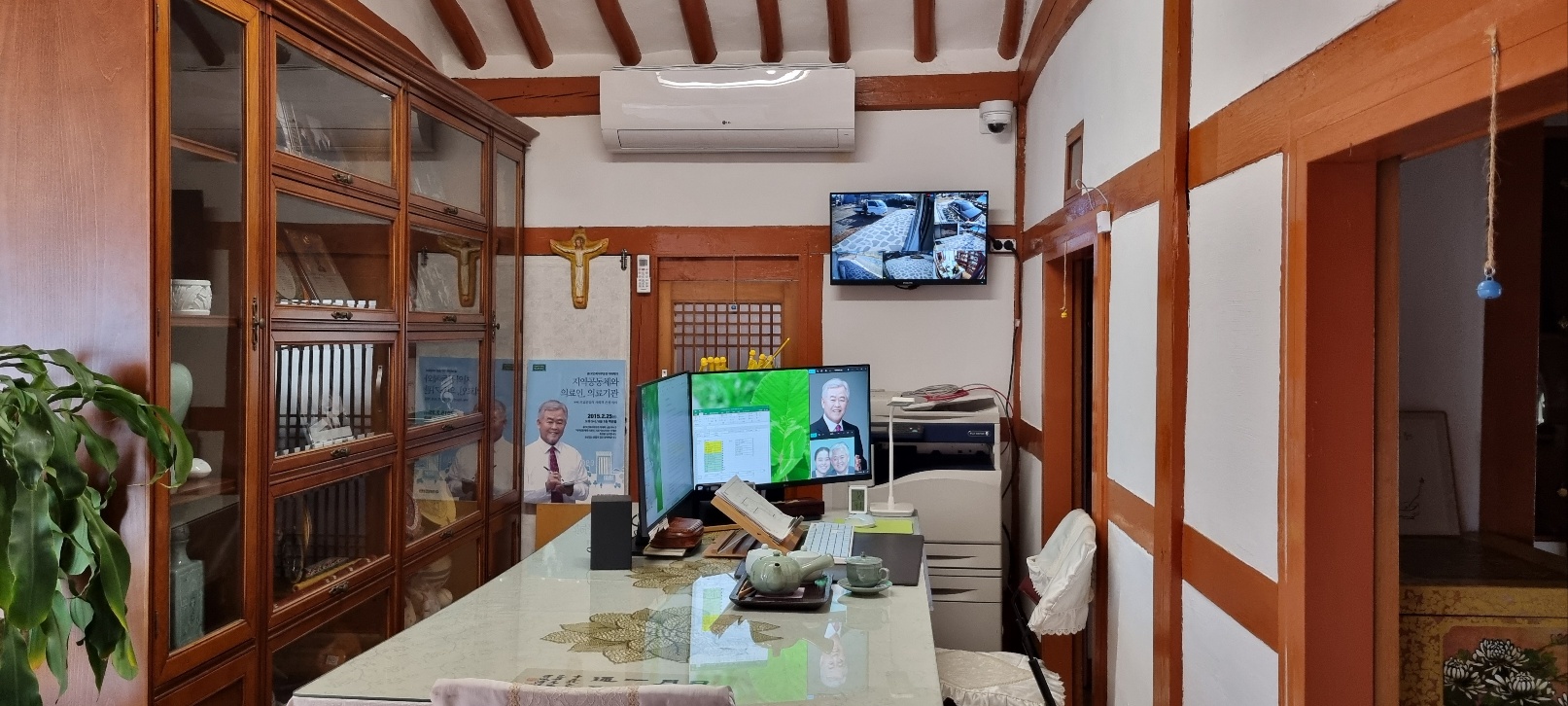 20¿©Æò »ý°¡¿¡´Â ÈÄ¿¡ ±â³ä°ü¿¡ ³õÀ» °¡±¸¸¦ Áß½ÉÀ¸·Î ÃÖ¼ÒÈÇÏ¿© ÀÌ»çÇ߱⠶§¹®¿¡ ²À ÇÊ¿äÇÑ °¡±¸¿Í ±â³ä»ç¾÷ȸ »ç¹«±â±â¸¦ Áß½ÉÀ¸·Î µé¿©³õ¾Ò´Ù. Çö°ü ¾Õ Àü½Ç(îñãø)¿¡´Â ÀÚ°³³ó°ú »ç¹æÅ¹ÀÚ, ÀÚ°³Å×À̺í, ¹®°©À» ³õ°í, °Å½Ç¿¡´Â ȸÀÇŹÀÚ·Î ¾µ 8ÀÎ¿ë ½ÄŹÀ» Ã¥»ó °â ¹èÄ¡Çϰí Ã¥Àå¿¡´Â ±â³ä»çÁø°ú µµÀڱ⠵îÀ» ³Ö¾ú´Ù. ÇÁ¸°ÅÍ º¹ÇÕ±â À§¿¡´Â CCTV ¸ð´ÏÅ͸¦ ´Þ¾Ò´Ù. CCTV´Â »ý°¡ ÁÖº¯ 5 ´ë¿Í ³»ºÎ¿¡ 1´ë¸¦ ¼³Ä¡Çß´Ù. ±â¾ïÀÚ Ã¢°¡¿¡´Â 2Àοë Å×À̺í 2°³¸¦ °¢°¢ ¹èÄ¡Çß´Ù. ¾È¹æ¿¡´Â ±âµµÃ³¿Í ¼¶øÀå 3°³¸¦ ³ª¶õÈ÷ ³õ°í, ¾×ÀÚ 14°³¸¦ ¼ö³³°¡±¸ À§¿¡ ¿Ã·Á³õ¾ÒÀ¸¸ç, ¿ô¹æ¿¡´Â »ç¹«½Ç¿¡¼ »ç¿ëÇÏ´ø 3°³ Ã¥ÀåÀ» ¹èÄ¡ÇÏ°í ±× ¾È¿¡ ¼·ù¿Í °¨»çÆÐ µîÀ» ³Ö¾ú´Ù. »ç¶û¹æ¿¡´Â ¾Ù¹üÆÄÀϰú °¨¿Á¿¡¼ Ãâ¼Ò ÈÄ ÀÎÅͺ並 Çß´ø ÀâÁö·ù µî ÀÚ·á¿Í »çÁøÀ» ¹èÄ¡Çß´Ù. »ç¶û¹æ ´©¸¶·ç¿¡´Â 4ÀÎ Æí¹é¼îÆÄ¸¦ µÑ·Î ³ª´©¾î ¹èÄ¡ÇØ ƼŸÀÓÀÌ °¡´ÉÇϵµ·Ï Çß°í, µÚÅë·Î¿¡´Â ³·Àº Ã¥²ÈÀÌ 5°³¿Í ±ä Ã¥²ÈÀÌ 1°³¸¦ µÎ¾î Ã¥ ¹Ú½º 25°³¸¦ Ç®¾î ÀÌź¹ Àú¼µéÀ» ²È¾Ò´Ù.
