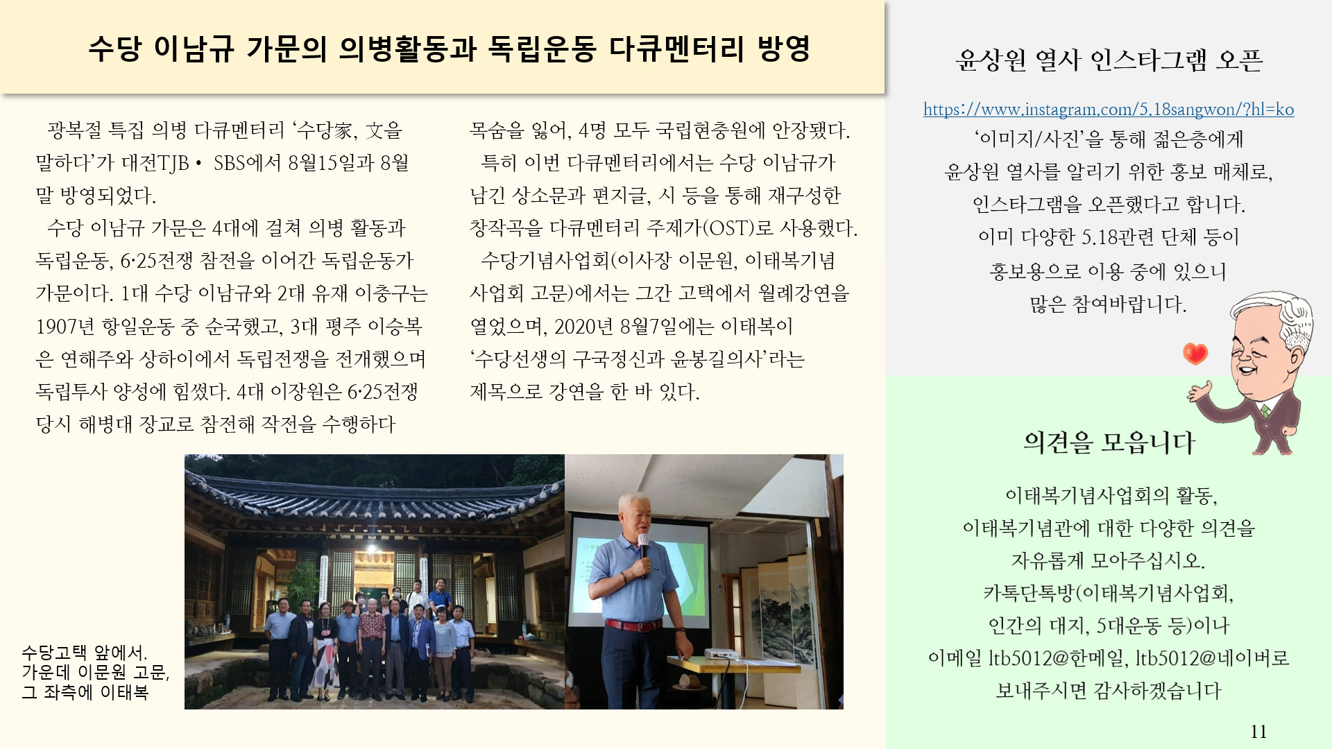 ´º½º·¹ÅÍÀÇ Á¦¸ñ <ÀÌź¹À̶ó ¹Ï´Â´Ù>´Â ±è¼öȯ Ãß±â°æ´ÔÀÌ ´Ã ÀÌź¹ ´Ù´Ï¿¤À» ÇâÇØ ¸»¾¸ÇϽг»¿ëÀ¸·Î,