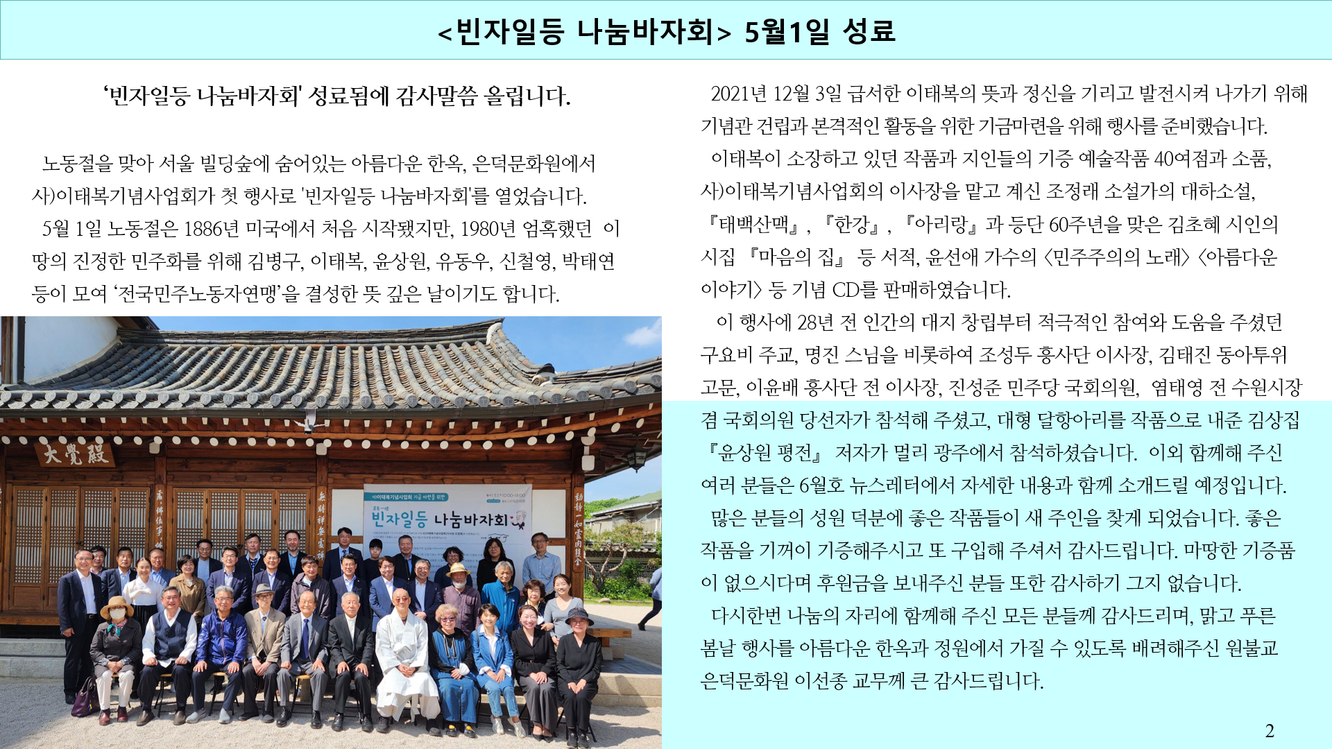 <ºóÀÚÀÏµî ³ª´®¹ÙÀÚȸ> 5¿ù1ÀÏ ¼º·á
